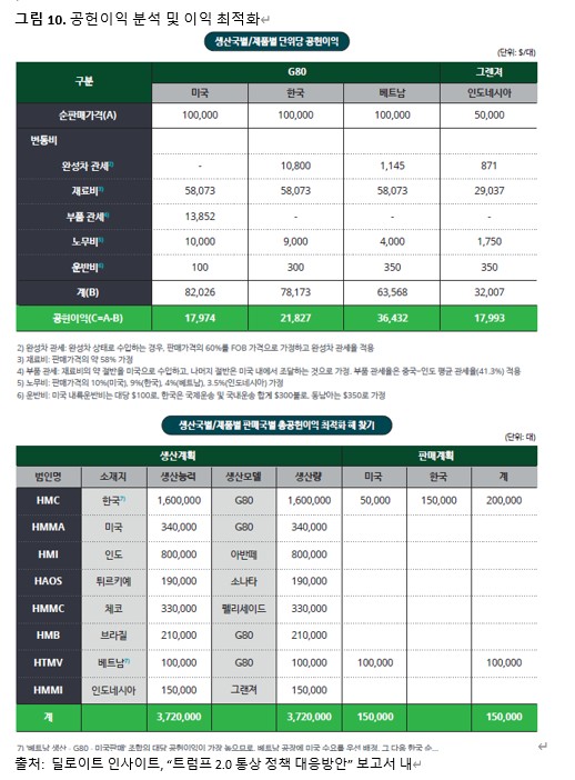 트럼프 정부의 관세 및 조세 정책이 무엇보다 미국 내 투자를 유도하고 있기 때문에, 그 동안 미국 현지 생산 시설을 확충해 관세 부담을 줄이고 현지화 전략을 강화하는 것이 최우선적인 전략으로 제시돼 왔다. 하지만 이러한 전략도 다양한 품목 관세율 인상 및 범위 확대로 인한 부담에 노출될 수 있는 상황이다. 한미 무역 합의에 따라 자동차 품목 관세율이 15%로 인하된 것은 다행이지만, 일본에 비해 유리했던 2.5%p의 한-미FTA 효과가 사라졌다는 점과 자동차 부품의 상당 부분을 차지하는 철강과 알루미늄에 대해 한국산 쿼터가 사라지고 50%가 부과된다는 점은 현지 생산 원가 상승으로 직결돼 우리 기업의 경쟁력에 부담으로 작용할 수밖에 없다.